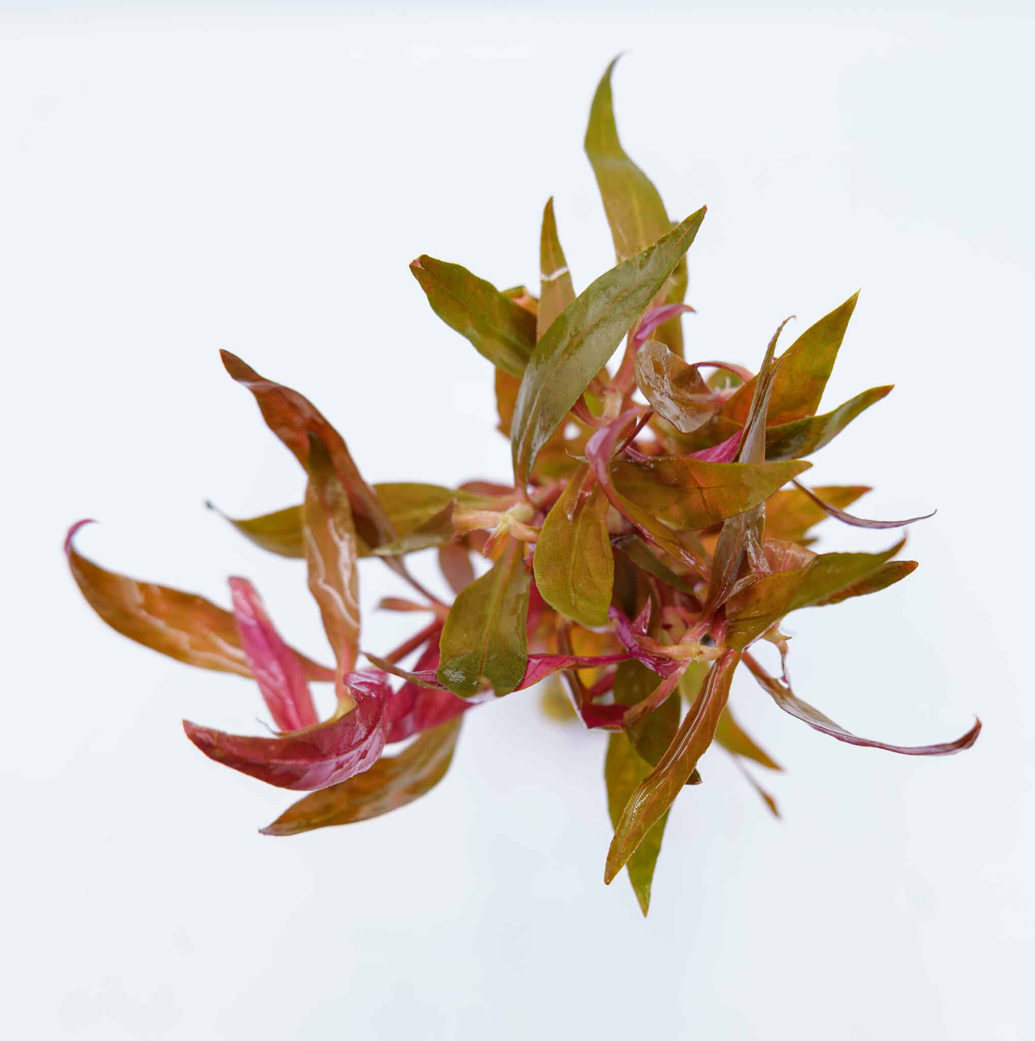 Alternanthera reineckii is native to tropical and subtropical wetlands of South America, where it grows along shallow margins, seasonally flooded areas, and slow-moving water. ‘Rosaefolia’ is a cultivated ornamental form selected for its rich pink to red coloration and attractive leaf shape.
