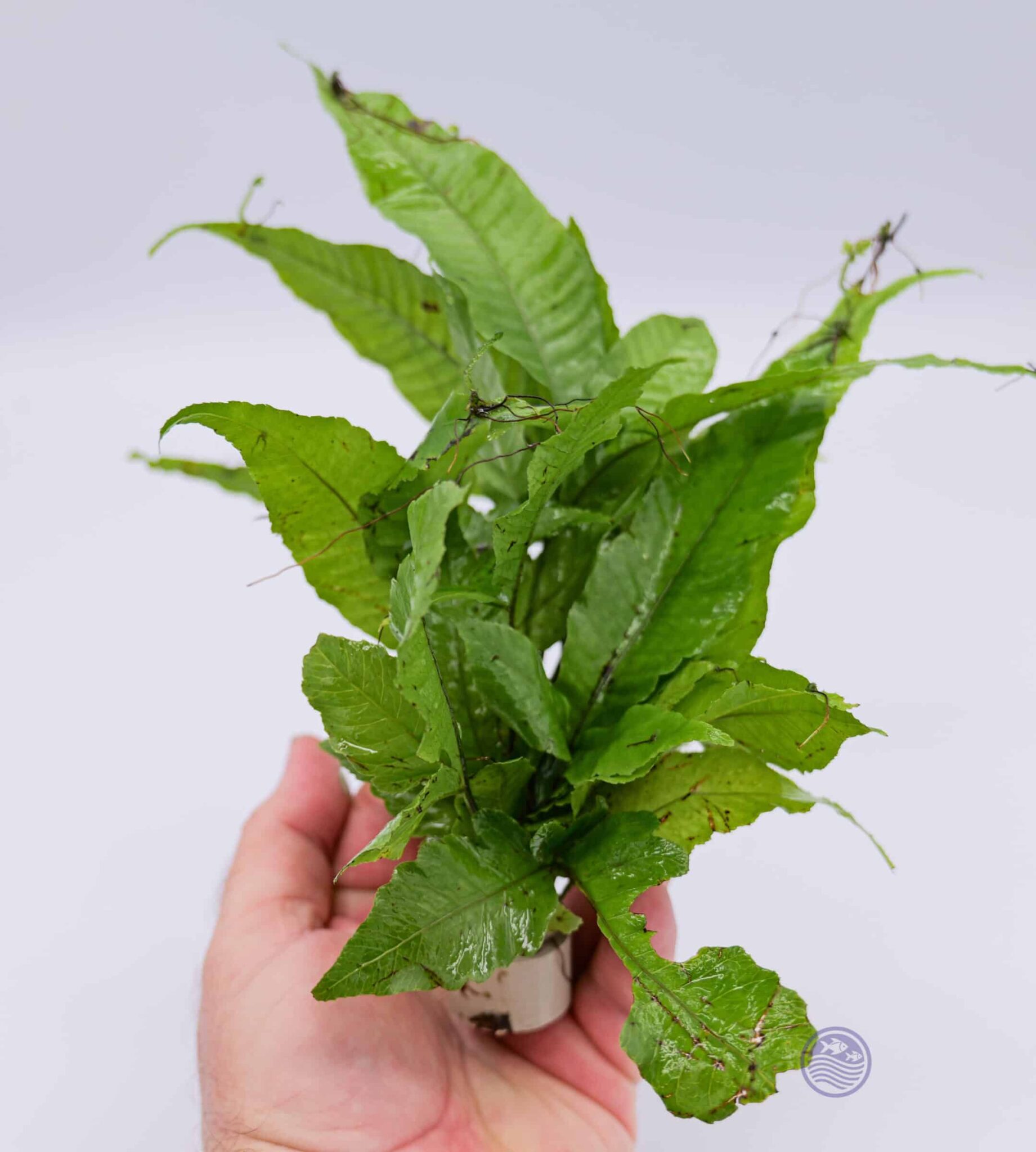 Primarily a water column feeder. Regular liquid fertilization supports healthy new fronds. Root tabs are unnecessary and burying the rhizome should be avoided.