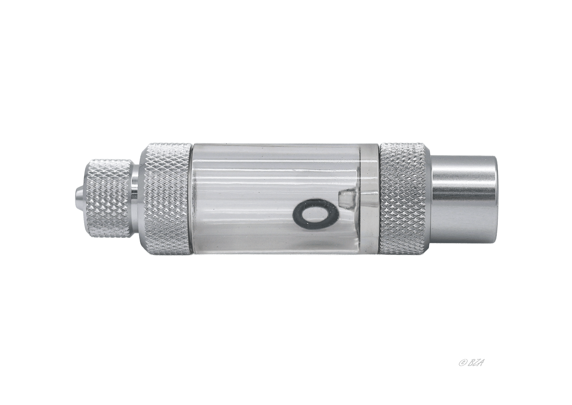 The clear chamber allows bubbles to be counted easily at a glance, making fine adjustments straightforward and repeatable. This direct mount design keeps the setup compact and eliminates the need for inline fittings.