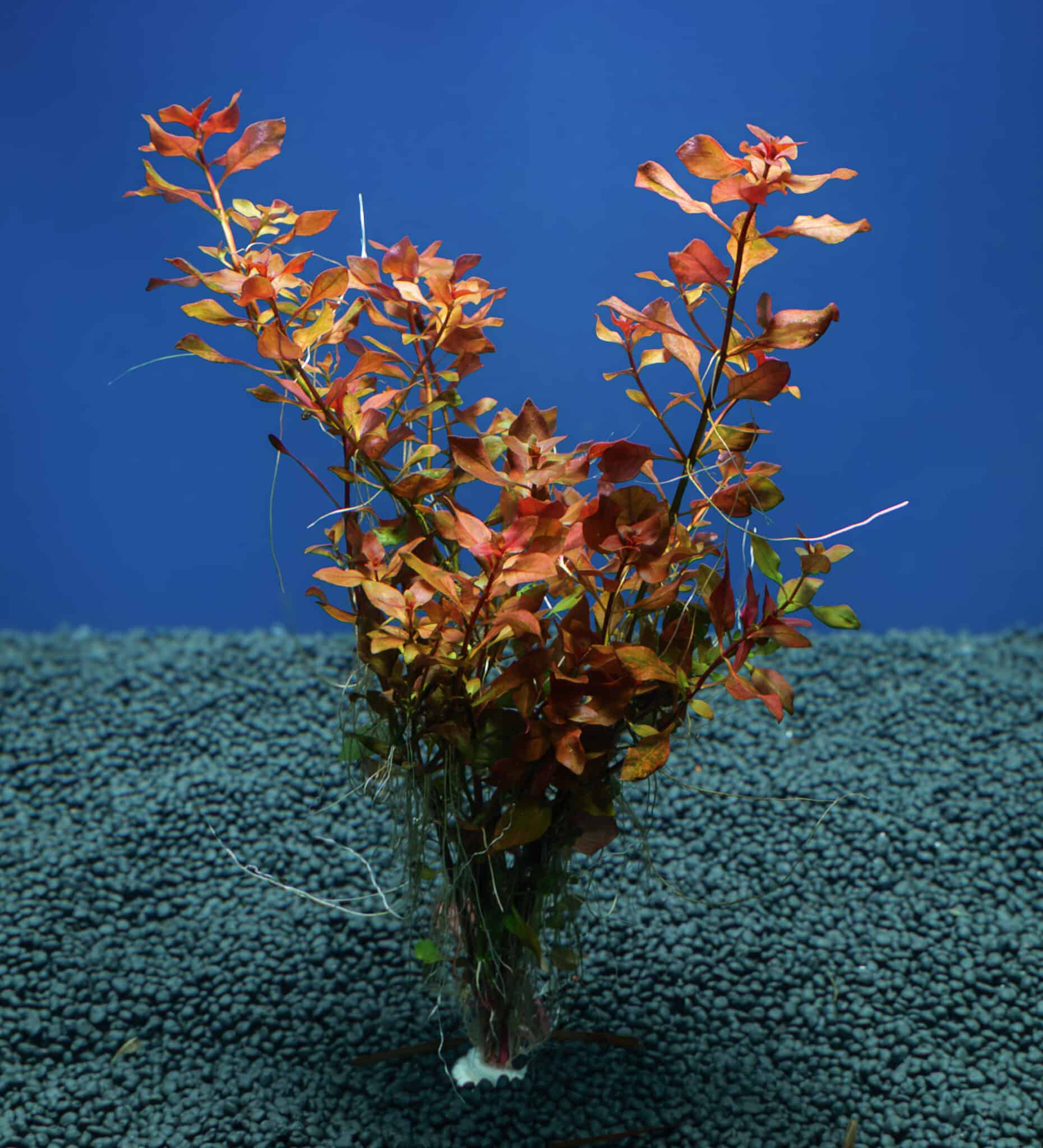 The leaves develop deep red to crimson tones when grown under moderate to strong lighting with stable nutrients. In lower light the plant will still grow reliably but may appear more bronze or reddish-green.