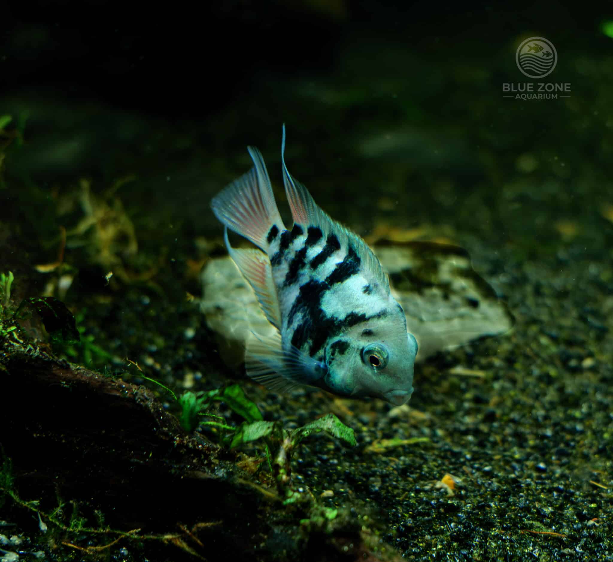 The Polar Blue Parrot Cichlid is a selectively bred hybrid derived primarily from Central American convict-type cichlids. It was developed in the ornamental aquarium trade to combine the hardy genetics of convict cichlids with a distinctive powder-blue coloration and rounded parrot-like facial profile. Unlike larger blood parrot cichlids, Polar Blues remain compact and highly adaptable, making them suitable for moderately sized aquariums.
