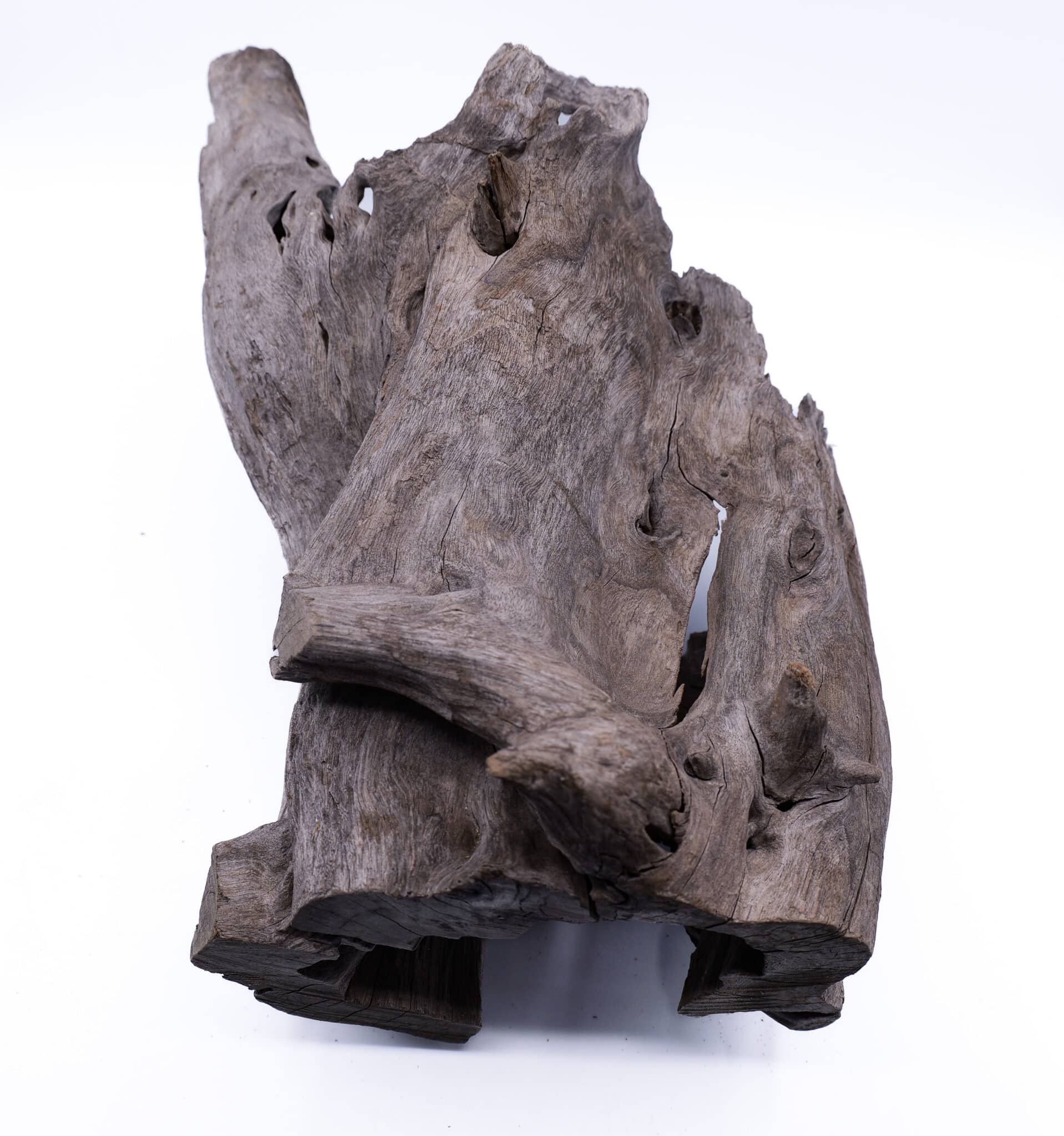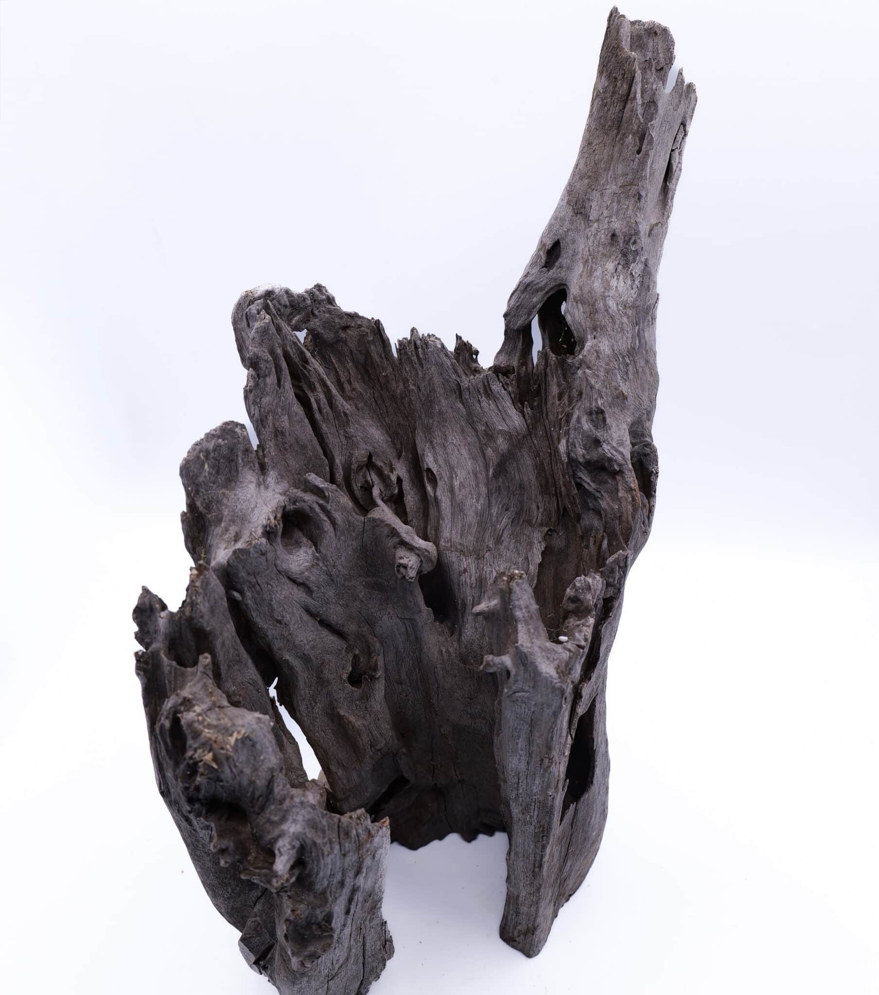 The aged wood texture and darker tones give it a established look that blends easily into both minimal and heavily planted aquascapes. Its shape allows for creative placement, whether used as a standalone feature or integrated into a larger design.